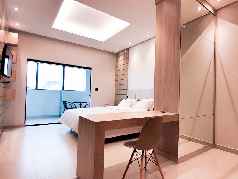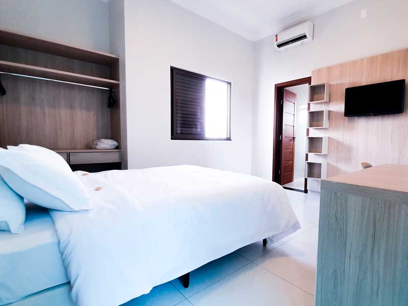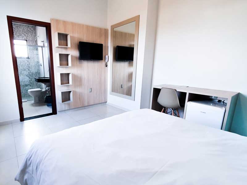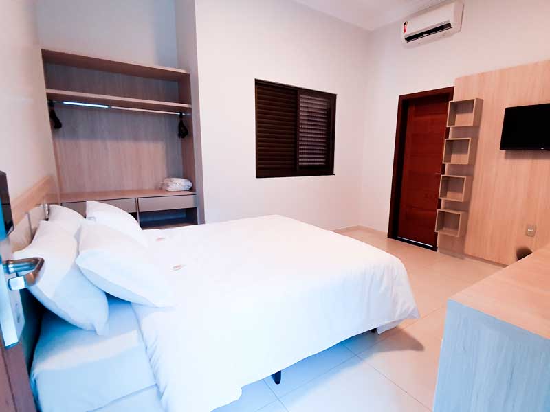 Hospede-se em nossa confortável acomodação Casal Luxo, que conta com: